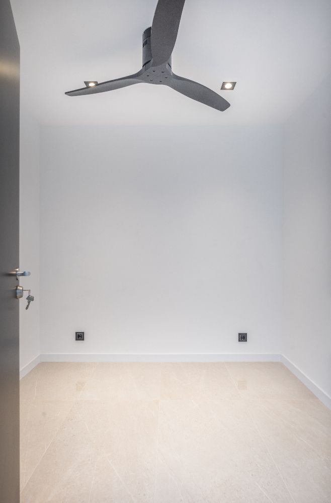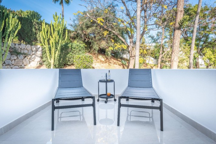 The property offers three double bedrooms, including a convenient ground-floor bedroom. Additionally, there is a fourth room that can be used as an office or storage space. The first floor features two terraces, each with breathtaking views—one overlooking the golf course towards the sparkling Mediterranean sea and the other offering serene views of the iconic La Concha mountain.
