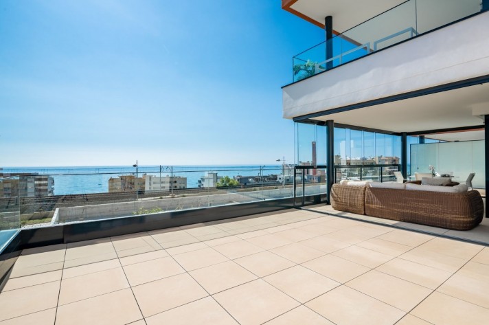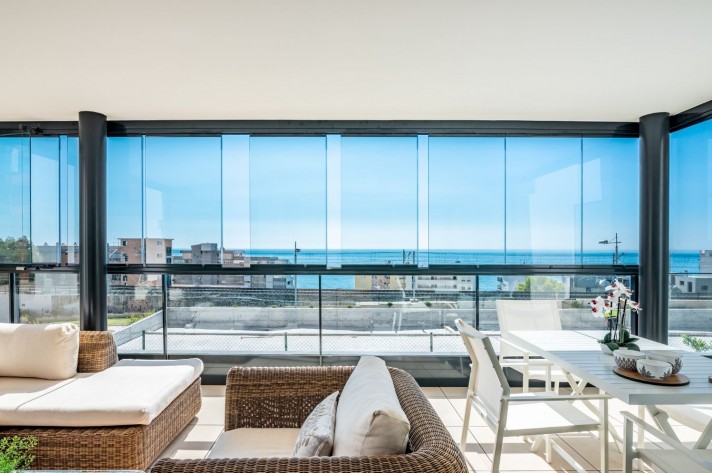 This luxury apartment offers a spacious open plan living area flooded with natural light, ample terraces with stunning sea views., parking and storage.